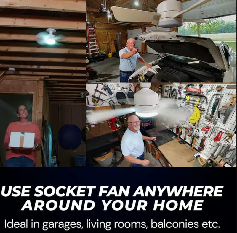 Socket Fans are great to keep in the garage, workout room, kitchen, attic, basement, just about anywhere there’s a light socket. Use virtually anywhere where there's a ceiling light!