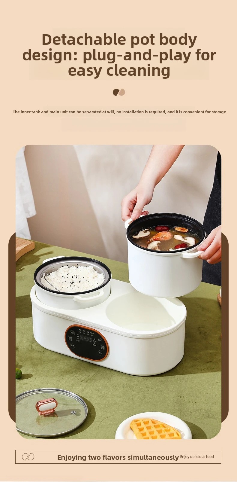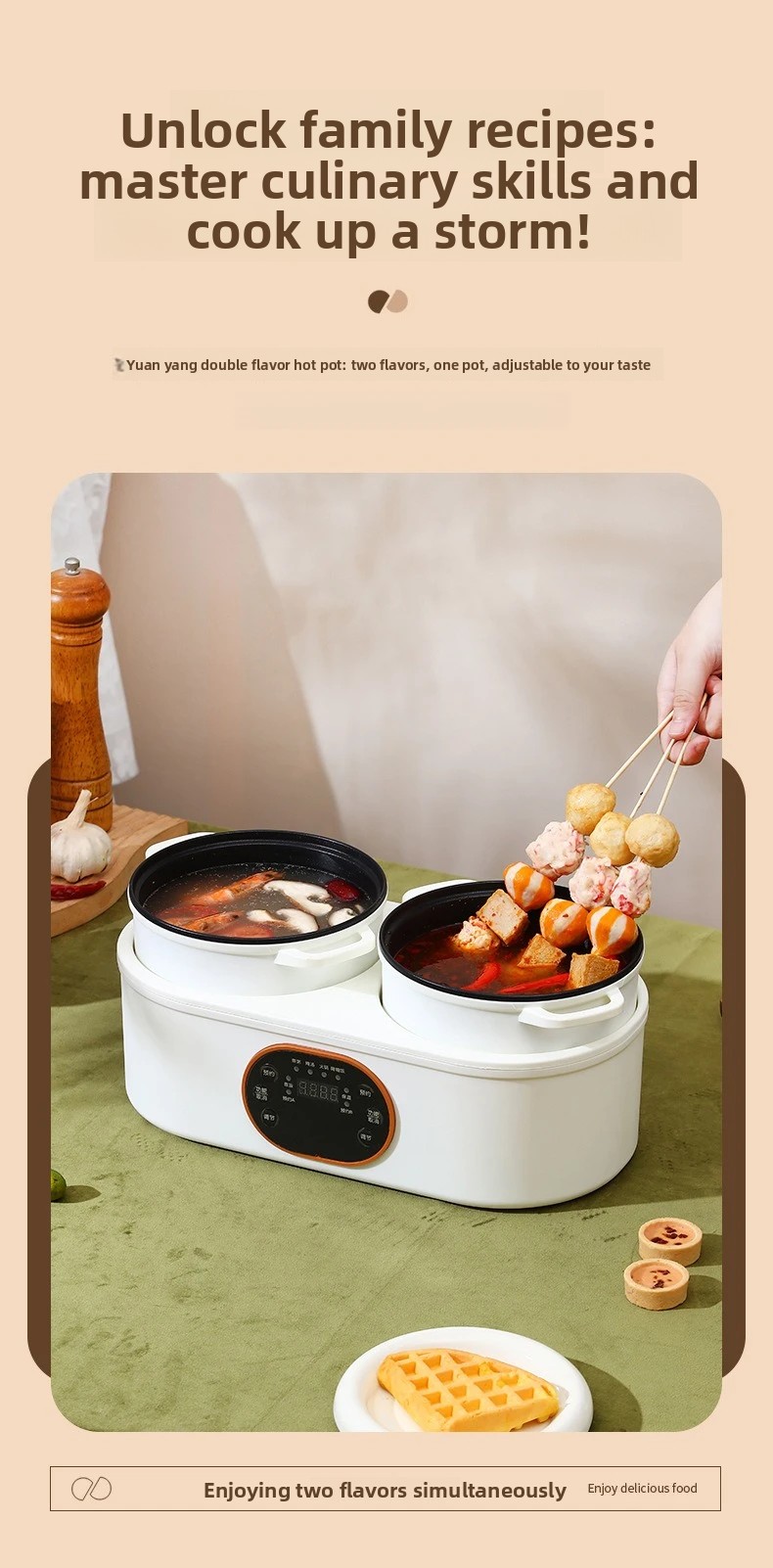 2026-hot sell 220V Intelligent Double-bile Rice Cooker Automatic Multi-functional Rice Cooker Mandarin Duck Electric Hot Pot Hea