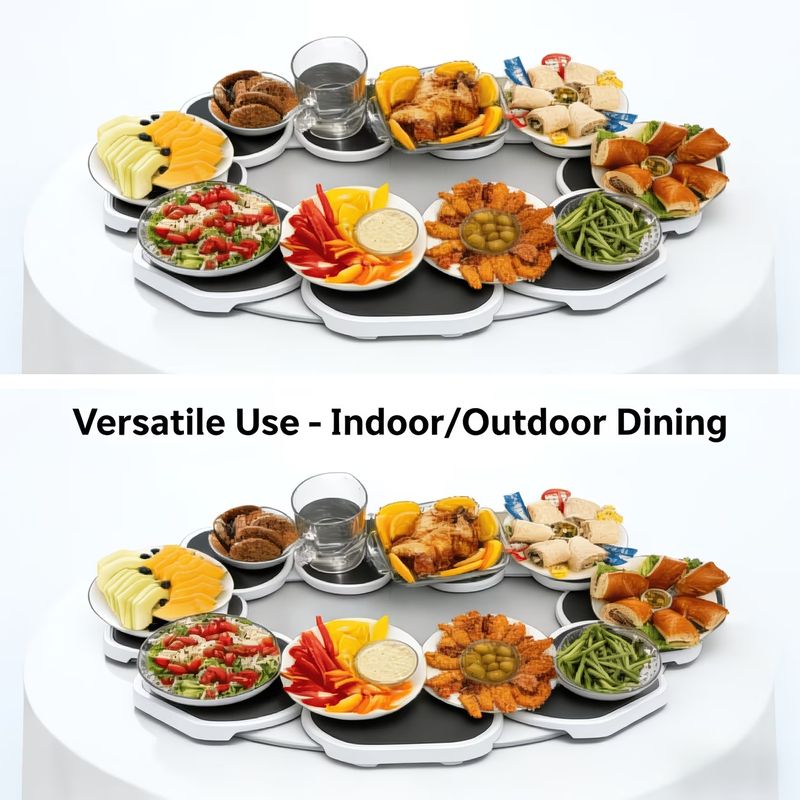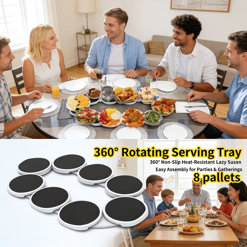 Sturdy Non-Slip Base – The robust non-slip structure ensures the tray stays firmly on the table, preventing food from spilling or sliding even during the 360° smooth rotation.