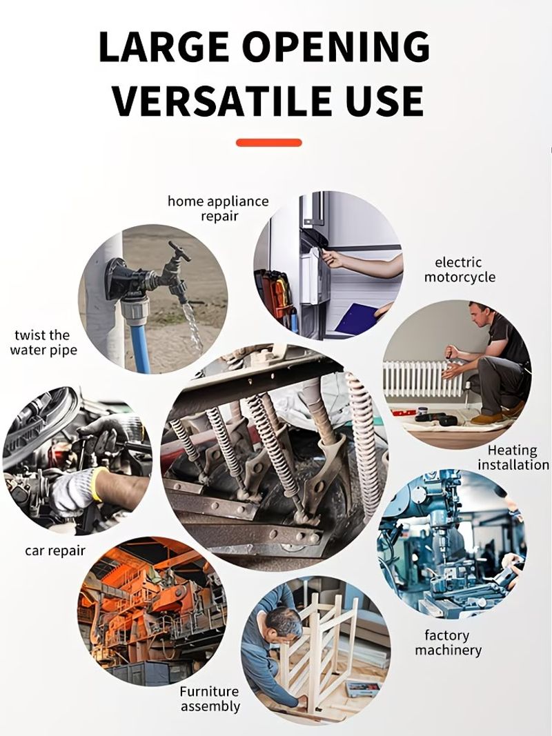 SMOOTH TURBINE SLIDING ADJUSTMENT - Equipped with a precision-engineered turbine sliding rod, it enables smooth, obstruction-free jaw adjustment—effortlessly adapting to various nut and bolt sizes to meet diverse usage requirements.