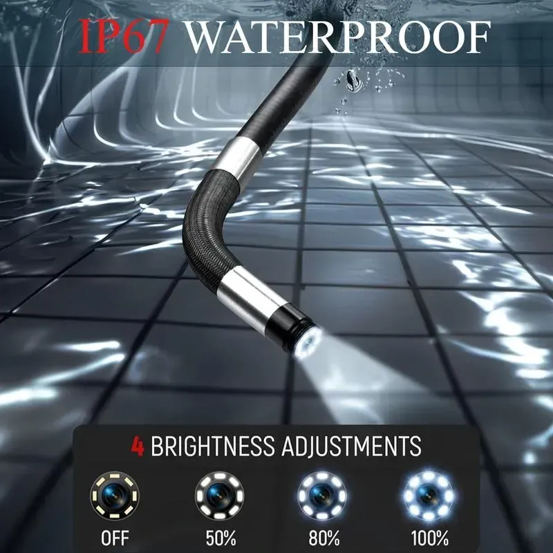 •【IP67 Waterproof】Equipped with a waterproof camera and semi-rigid cable, the camera works in wet or underwater conditions, perfect for sewer or pipe inspections.