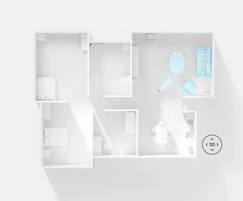 Using the industry's leading laser navigation technology, it scans the indoor environment 360°, quickly builds the home layout, and accurately plans the cleaning path without fear of light and environmental interference.The 3D map can be generated with one click on the Mijia APP, and the stereo imaging is clearer.