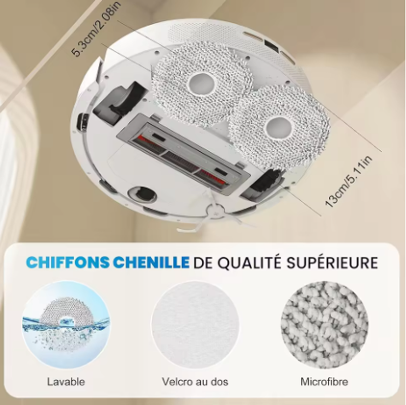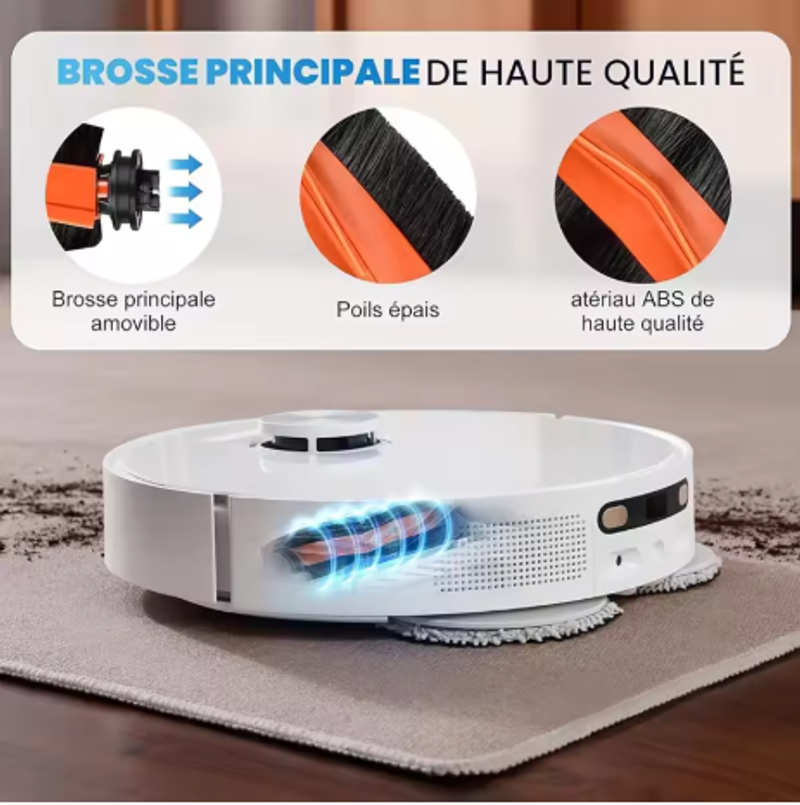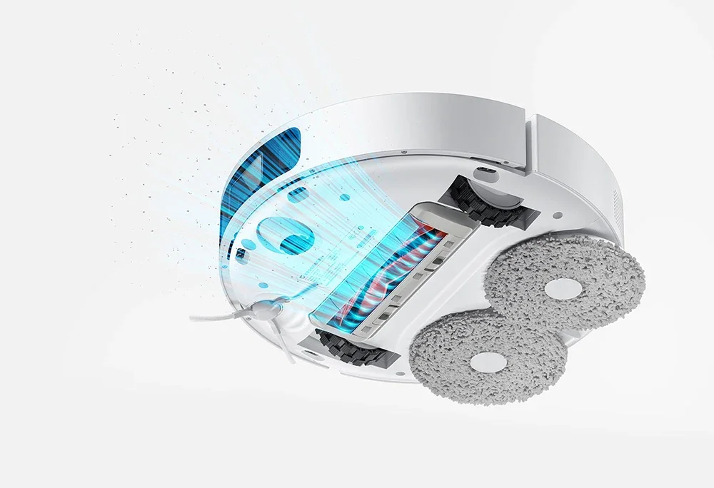 Double mop 180 rpm* high-speed rotation, adjustable water volume in 3 modes, simulates artificial supercharged mopping, 5 times efficient cleaning power, and strongly removes dry coffee stains, dry mud stains and other stains on the ground.Low-noise cleaning in single drag mode, sleep comfortably without disturbing.