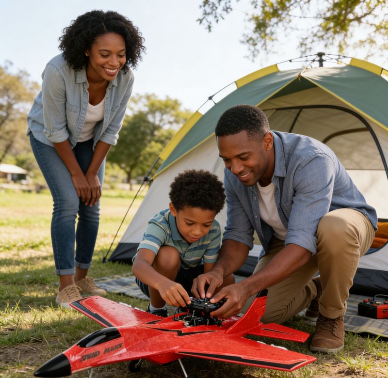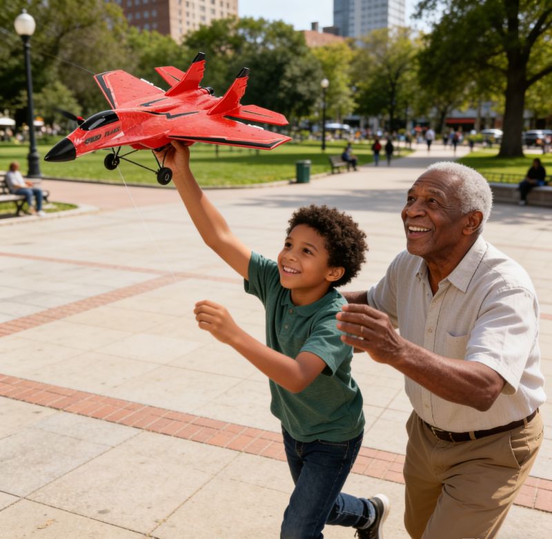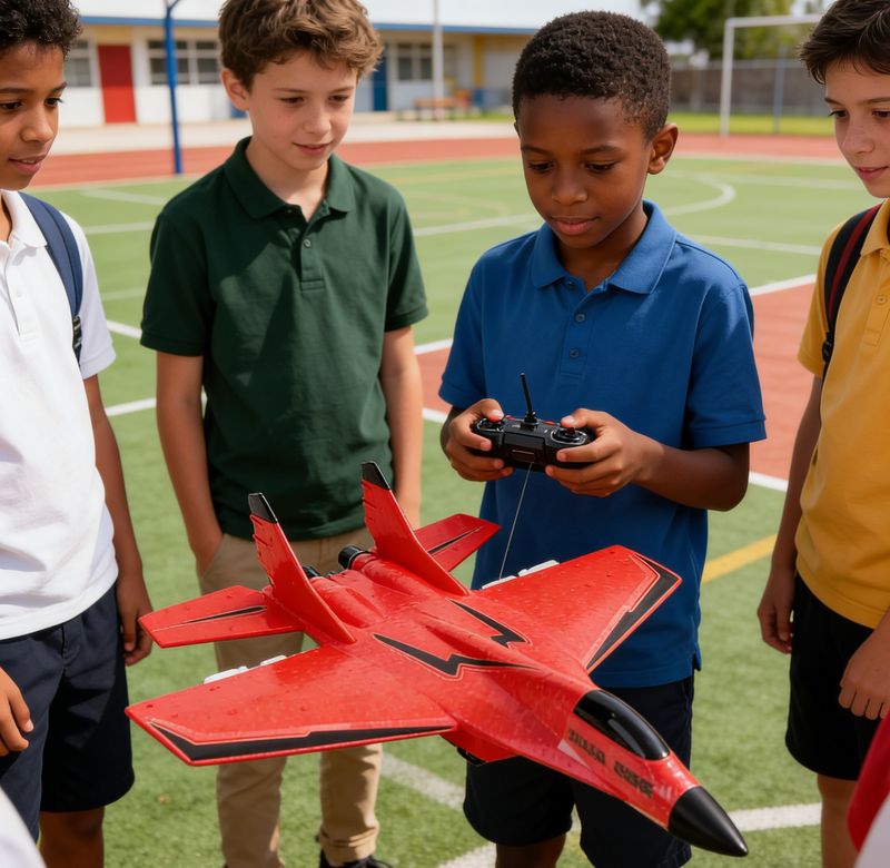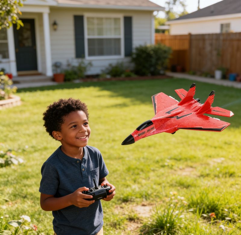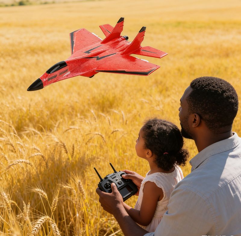Cool Fighter Jet Look – The bright red fuselage with stylish black accents mimics a real military jet, attracting attention and exciting children and enthusiasts alike.