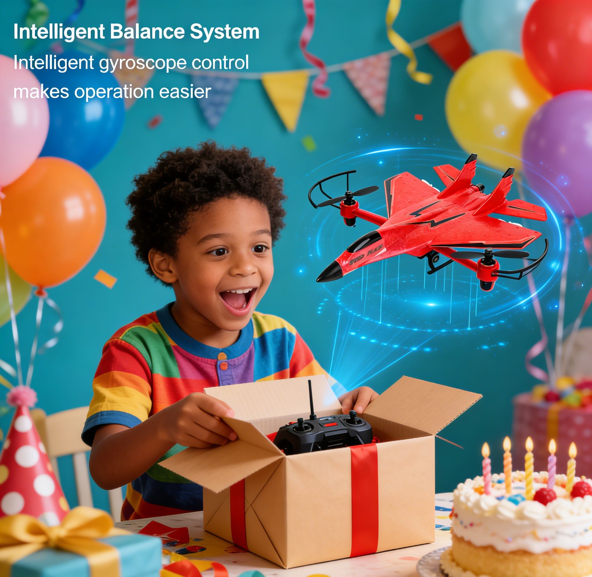 Intelligent Balance System – The built-in gyroscope control system ensures the aircraft remains stable in the air, allowing beginners and children to fly safely, even in open areas.