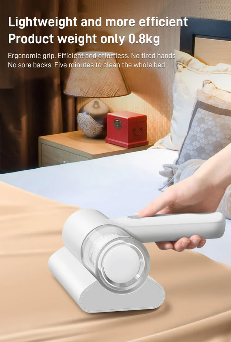 The mattress cleaner machine has 12kpa suction and a 50w motor. Targeted mattress vacuum removes dust and grime from fabrics and deep cleans your bed, pillows, carpet.