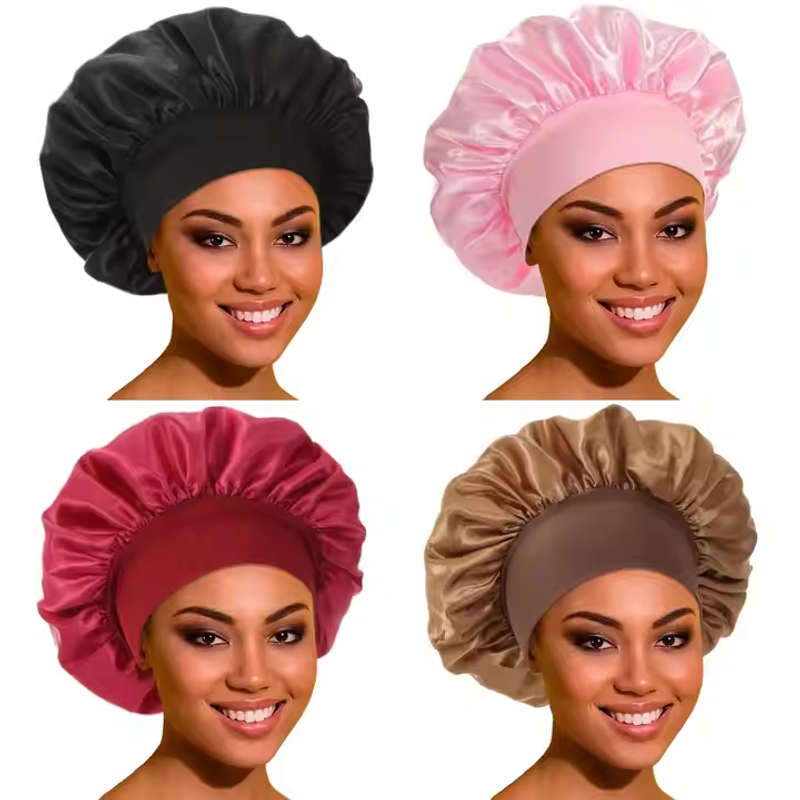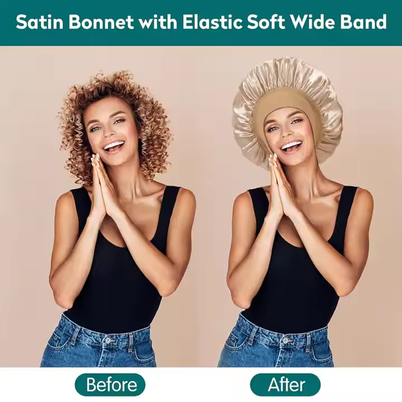 Custom Logo Silk Stain Hair Bonnets With Elastic Soft Band Beauty Soft Bath Cap Satin Wrap Night Sleep Bonnet Bonnets Satin Bonnet Bonnet En Satin Bonnets And Satin Hair Wraps