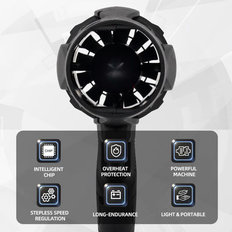 Multi-purpose: car snow, car water, car leaves. The computer duster is suitable for cleaning computer keyboards, laptops, cameras and blinds, etc. The turbo fan can even be used for products that need to be inflated, such as inflatable beds, lifeboats, etc. The car dryer air blower can also be used for picnics, fires, cleaning floors, clearing leaves and cleaning pet hair. Powerful function and many usage scenarios.